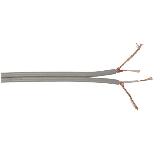Light duty speaker cable for small audio equipment, intercoms, etc. Grey outer insulation with black trace for polarity identification.